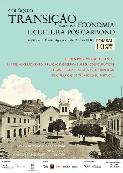 De hoje a um mês, no dia 10 de Abril, vai ocorrer em Pombal um colóquio sobre as iniciativas de Transição, denominado "