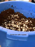 Com os devidos cuidados e nas proporções adequadas, mistura-se o spawn com as borras de café, coloca-se em sacos ou outros recipientes, e guardam-se cerca de 1 mês em local escuro para desenvolvimento do micélio. Só então se coloca em local com luz (não demais) , temperatura amena e humidade suficiente, até os cogumelos começarem a surgir (o que leva mais 3 ou 4 semanas).