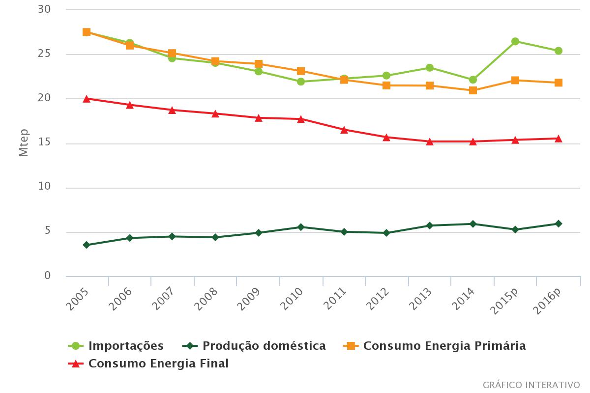Em 2016, o consumo de energia final aumentou 1,0% relativamente a 2015, devido sobretudo à subida do consumo dos produtos do petróleo e eletricidade.