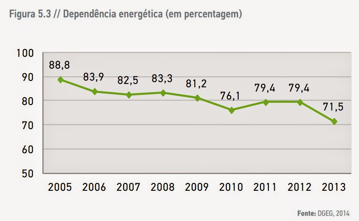 "Relativamente ao sector da energia, se por um lado dispomos de uma grande diversidade e abundância de recursos energéticos renováveis e apresentamos uma das mais altas taxas de produção de energia elétrica a partir de fontes renováveis da Europa, de 56,2% em 2013, e uma incorporação de renováveis no consumo final bruto de energia de 24,6% em 2012; por outro lado apresentamos uma elevada dependência energética do exterior, 71.5% em 2013, o que, apesar de ser o mais baixo dos últimos 20 anos, não deixa de ser preocupante..."